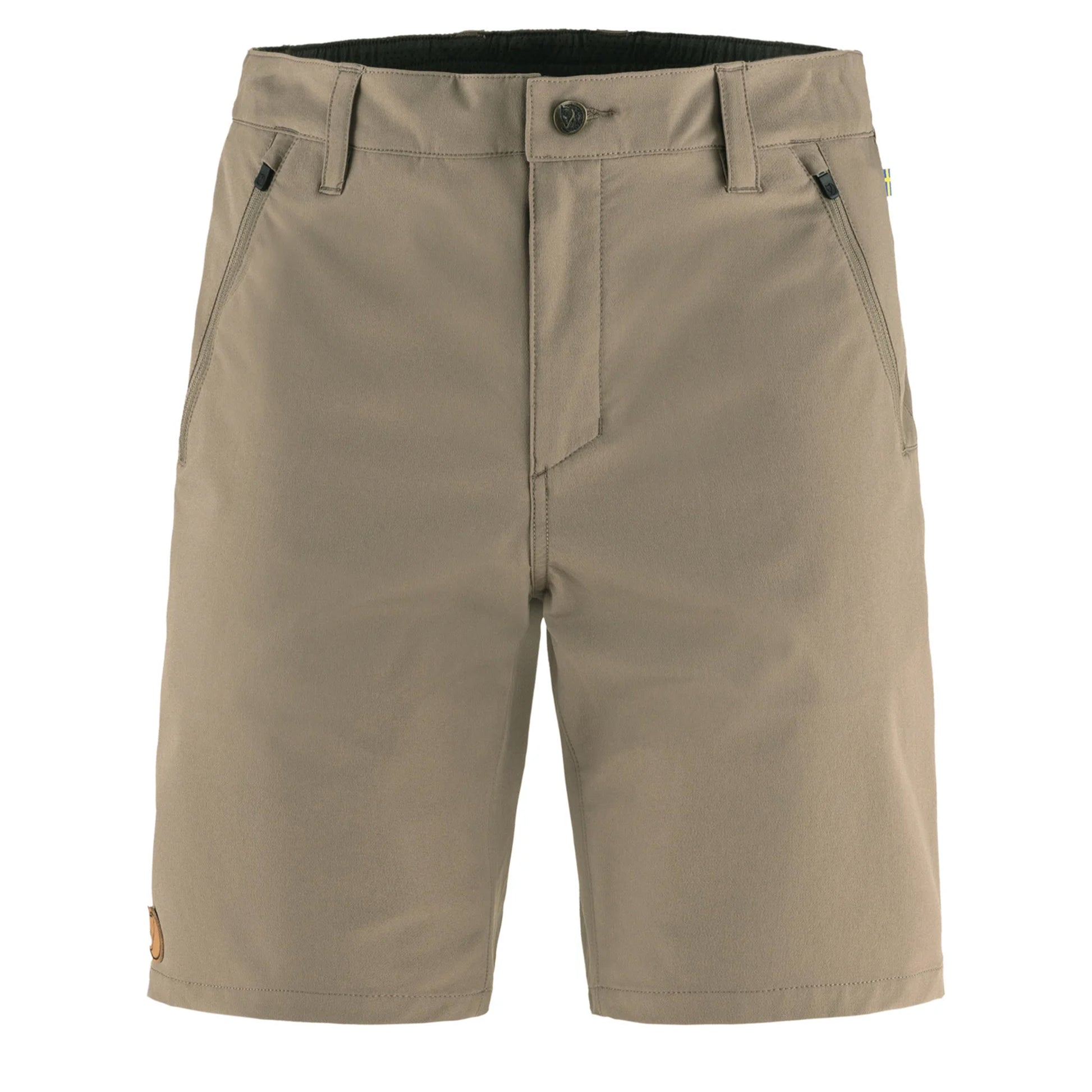 The Fjällräven Abisko Trail Stretch Shorts for men in Suede Brown are lightweight, packable and designed for comfort on warm weather treks. Made from durable quick drying double woven stretch fabric, they offer excellent freedom of movement. Features include an elasticated waistband with button closure, zippered mesh hand pockets and a secure leg pocket sized for your phone, making them ideal for active outdoor adventures.