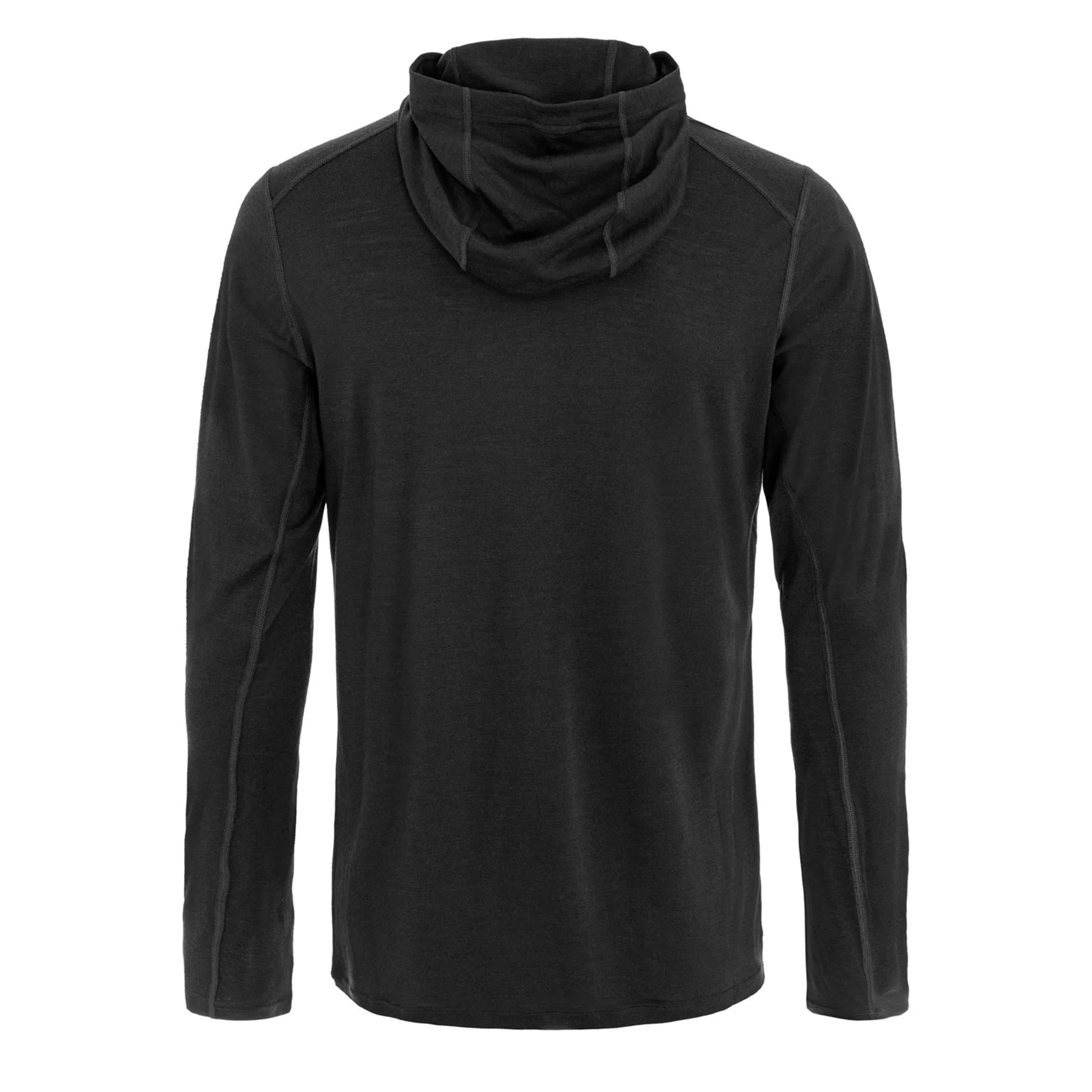 The Fjallraven Abisko Wool Sun-hoodie Black is a lightweight hoodie made from a soft jersey knit of ZQ merino wool and polyester. Ideal as a first layer in both warm and cold conditions, it blends the temperature-regulating qualities of wool with the durability and moisture-wicking abilities of synthetic fibres. It features long sleeves, a hood for light sun protection and thumbholes to keep the sleeves in place. Naturally odour-resistant, it’s perfect for multiday treks.