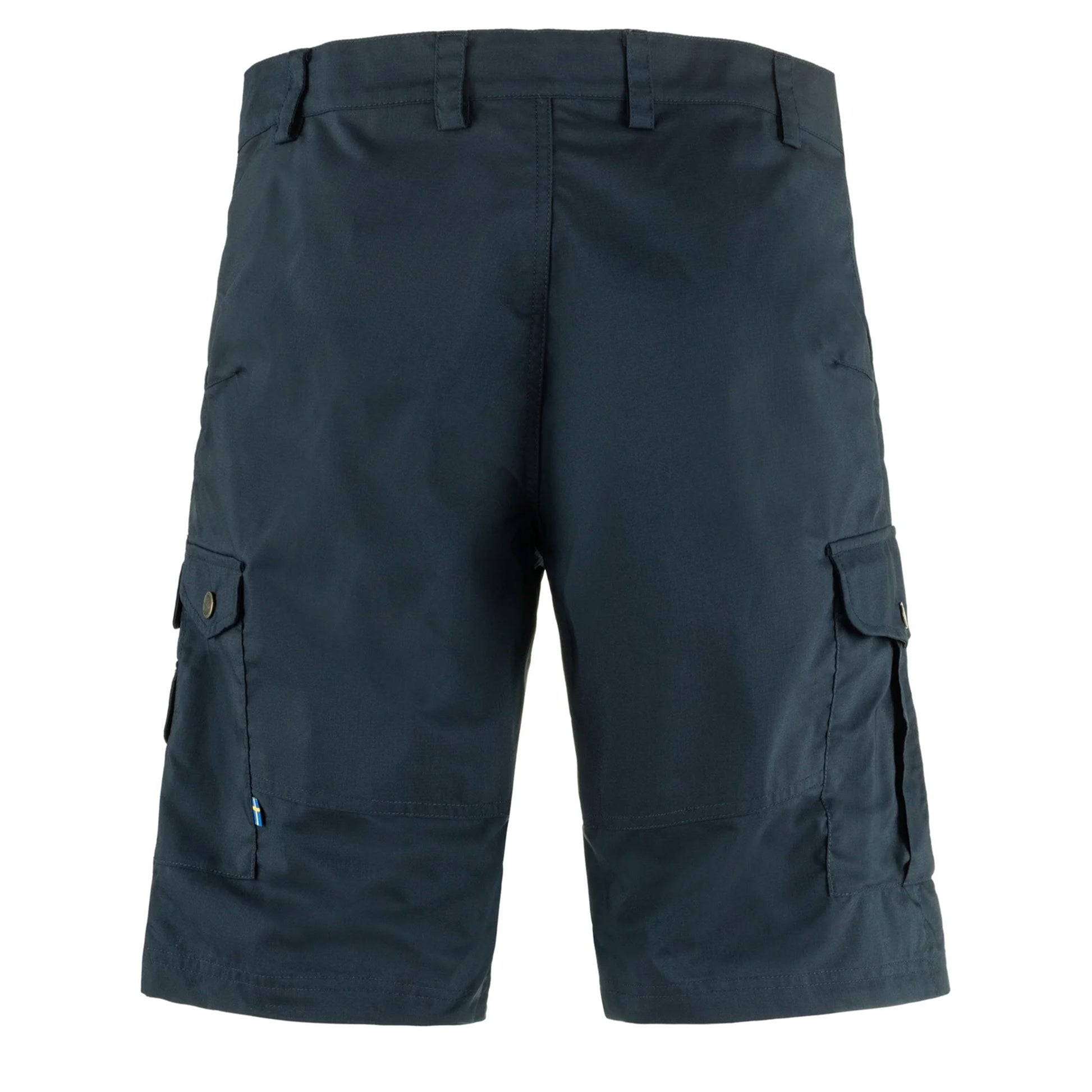 The Fjällräven Vidda Pro Lite Shorts for men in Dark Navy are lightweight and comfortable trekking shorts made from G-1000 Air Stretch, reinforced with double layers of fabric over the rear for added durability. These practical shorts are ideal for warm climates, featuring multiple pockets including open hand pockets, buttoned leg pockets with bellows, a multitool pocket, and an internal phone pocket. Designed with a regular fit, they offer comfort and functionality for outdoor adventures.