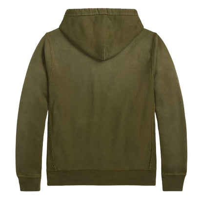 Experience cozy comfort and effortless style with the RRL By Ralph Lauren Garment-Dyed Fleece Hoodie in Olive. Crafted from soft, medium-weight cotton fleece, this hoodie features a drawstring hood and rib-knit side panels for a relaxed and casual look. The garment-dyed and heavily washed material adds a subtle tonal dimension.
