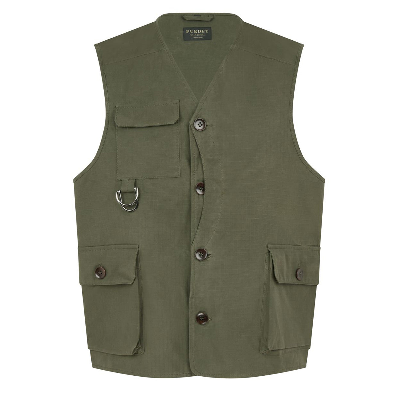 One of the newest additions to the Purdey collection - the Utility Pocketed Vest in Green. Sporting a classic utilitarian style, this 100% cotton vest is one to last the years. Purdey have crafted this into a boxy fit to be the ideal layering piece when the weather gets chillier, whilst offering a range of pockets so nothing needs to be left behind. This fishing inspired vest shows the exciting new products that James Purdey are bringing out!